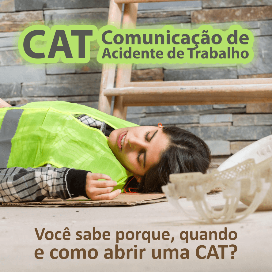 A sigla CAT significa Comunicação de Acidente de Trabalho, refere-se ao um documento informativo utilizado para comunicar a ocorrência de um acidente de trabalho ou de trajeto, bem como uma doença ocupacional ao Instituto Nacional do Seguro Social – INSS.
